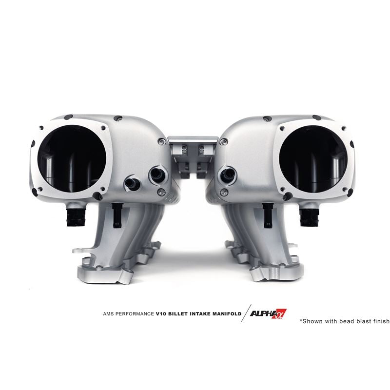 For the past 20 years, AMS Performance has been working directly with high powered turbocharged vehicles which has given us the experience necessary to futureproof and add modularity to our products, and the AMS Alpha V10 Intake Manifold is no exception. Designed for usage with the OEM fuel rails, or for our AMS fuel rails once they become available, this intake manifold will allow for fueling capabilities from mild to wild. Also included with our manifold are numerous AN ORB fittings of various sizes to allow for fitting with factory lines or plumbing your own vacuum lines.