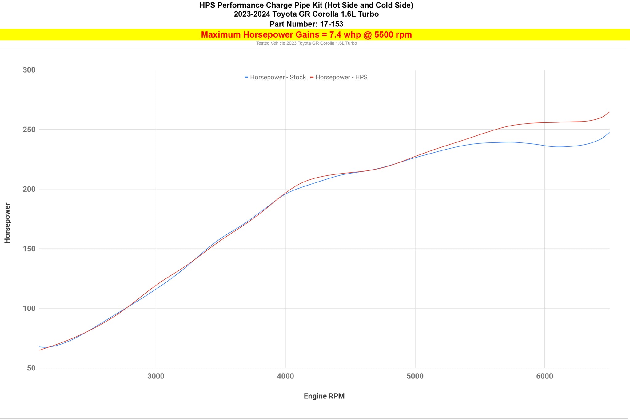 The HPS Performance Hot and Cold Side Intercooler Charge Pipe Kit is a complete bolt-on solution designed for noticeable power gains and enhanced responsiveness. This kit, featuring both hot and cold side 2" mandrel-bent aluminum pipes with bead-rolled ends, ensures a leak-free and robust airflow path. Experience dyno-proven increases of 7.4 horsepower and 7.1 lb-ft. of torque, resulting in sharper throttle response and reduced turbo lag. Constructed with 4-ply oil and high-temperature resistant couplers, 100% stainless steel embossed hose clamps, and all necessary hardware, this kit offers a straightforward installation without requiring a retune, making it the perfect upgrade for immediate performance improvement alongside long-lasting durability.