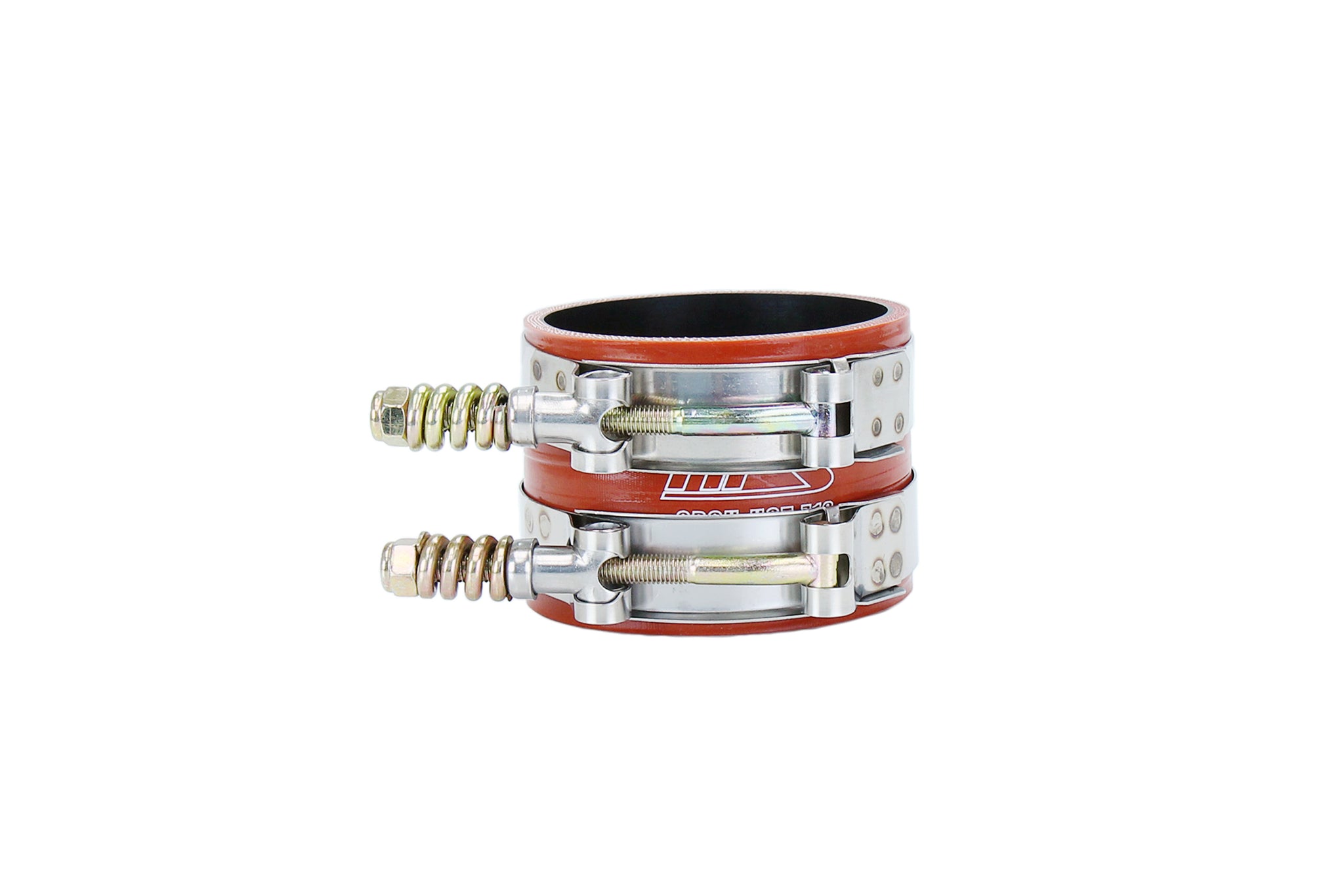 This HPS High Temp 4-ply Reinforced Silicone Turbocharger Intercooler Boot is an upgraded replacement for an OEM turbocharger intercooler boot, which is known to weaken and fail over time. Crafted with oil-resistant fluorolined silicone and engineered for superior performance, it is capable of enduring high levels of boost pressure and extremely high temperatures (up to 500F) under the hood, ensuring reliability across various operating conditions. With 4 layers of aramid reinforced silicone and a pressure tolerance of over 100 PSI, boost leaks are a thing of the past. Designed using the OEM component, this HPS product guarantees a seamless fit. Included in this kit are stainless steel spring loaded T-bolt clamps for an easy and leak-free installation. Upgrade your truck or equipment with this boot kit and avoid costly expenses in the long run.