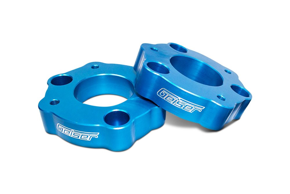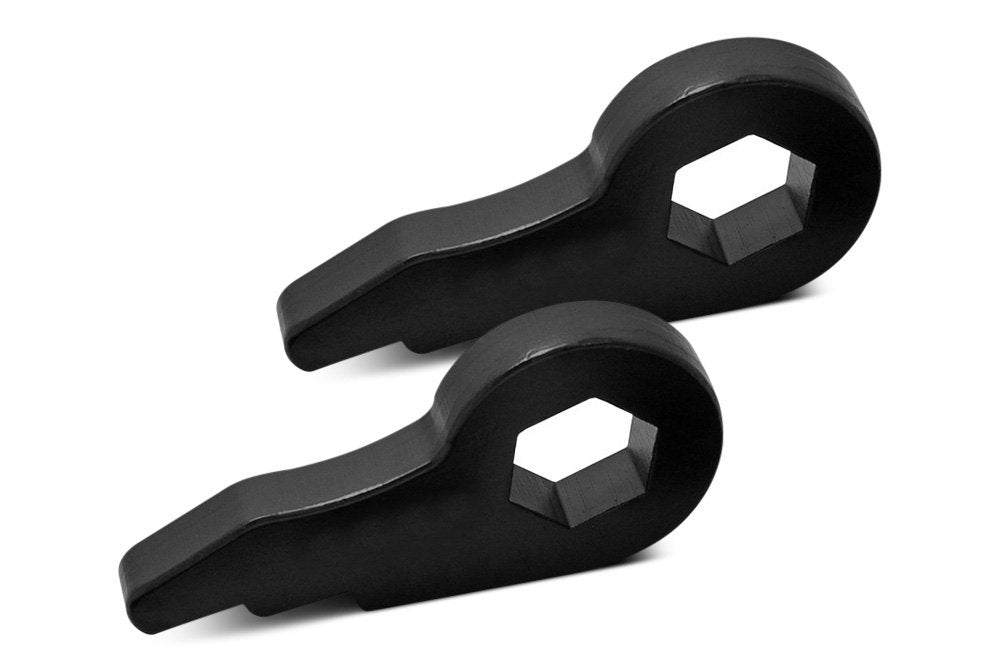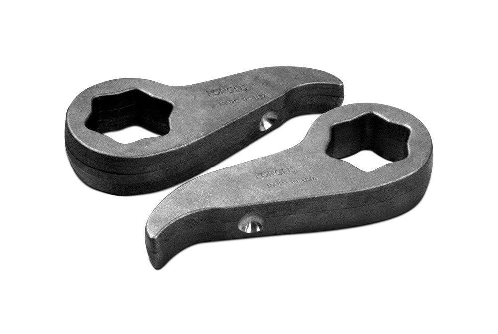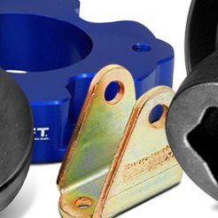 Many late model trucks have struts in front and the front end can be raised on these trucks using spacers at the top of the strut or extensions at the bottom. If you want to replace the shock portion of the strut, some can allow the position of the lower coil spring seat to be adjusted so you can get the exact degree of front end lift that you want. Trucks with coil spring suspension are also modified with spacers, installed at the upper or lower spring seat. Because of the increased lift, some coil spring spacer kits include shock extensions. For torsion bar suspensions we offer torsion bar keys that reindex the factory torsion bars so you can lift the front without the harsh ride that comes from just cranking up the bars with the OE keys.