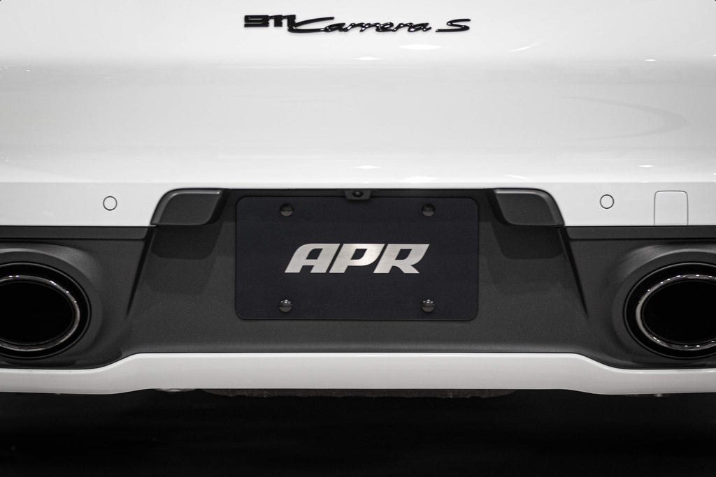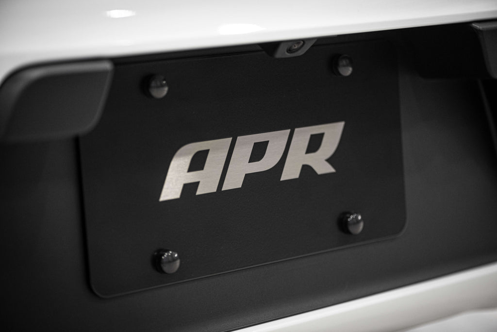 APR license plate frames and vanity plates are the perfect addition for any APR tuned vehicle! They are made from sturdy and rust-resistant T304 stainless steel. They are thick enough such they won't flop around like throw-away handouts you find in a typical swag-bag at car shows. They feature a fade and scratch resistant black powder coated finish with laser etching for the APR logo. Anti-vibration backside plate tabs keep it firmly in place. Four slotted install holes give you the perfect fitment with a solid connection to the car. The nice hardware hiders give it a clean finish too, hiding your unsightly plate screws. Fitment is universal. Some have said this product will increase the value of the vehicle, while others have made horsepower gains, but we can't comment on either.