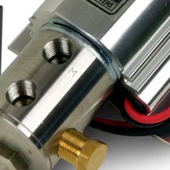 We offer both universal and vehicle specific line lock kits. Complete kits include solenoid valve, wiring, switch, and a light that illuminates when the line lock is activated, and application specific kits include prebent brake lines and mounting brackets. We also offer shifter knobs and T-Handles with built-in line lock switches. Line locks are easy to install and each kit comes with complete instructions. Once installed, to activate the line lock just pump the brake pedal several times to build up line pressure, and press the switch. The solenoid valve will maintain pressure in the front brake lines to keep the front brakes engaged when the brake pedal is released, maintaining the vehicle's position. When you want to come out of the burnout or launch the car, just release the switch.