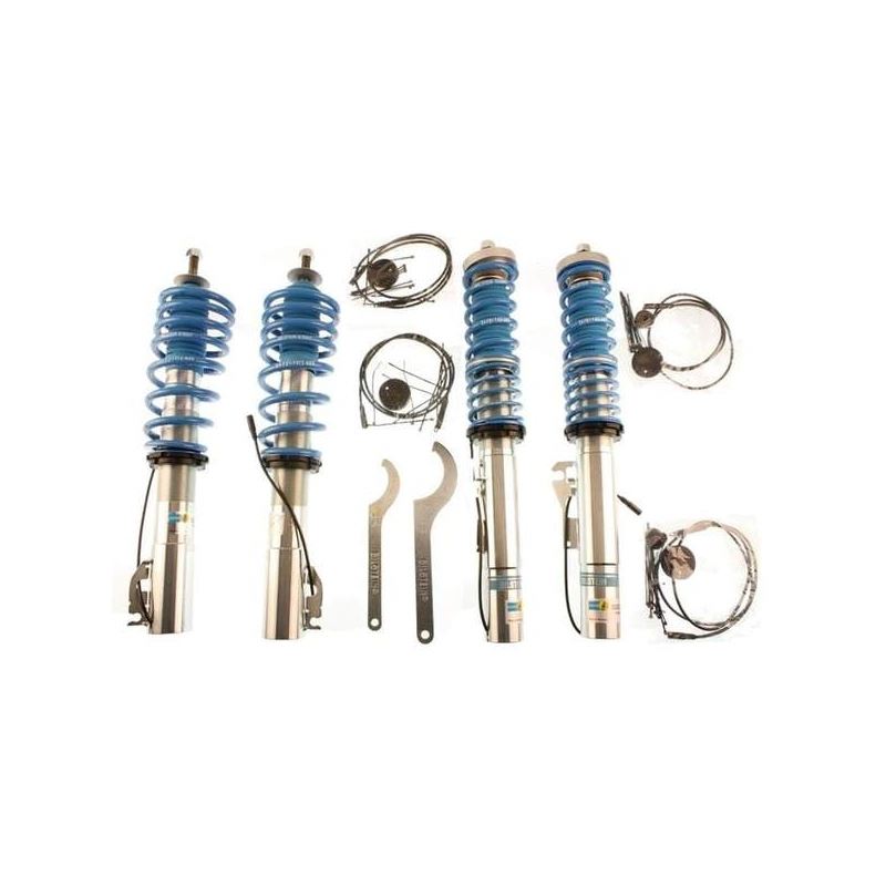 Bilstein B16 (DampTronic) suspension kits feature ride height adjustability with dampers compatible with OE electronic damping systems. All of the active features of the factory electronic suspension, along with the factory controls, will be retained with the installation of this kit. These kits offer monotube performance dampers with matched springs that are tuned for each specific application. The zinc coated and threaded body design will give you the flexibility to find the perfect ride height setting for your intended use while providing unsurpassed protection against the harshest road elements. B16 (DampTronic) suspension kits are made in Germany and feature technology tested on the famed Nurburgring.