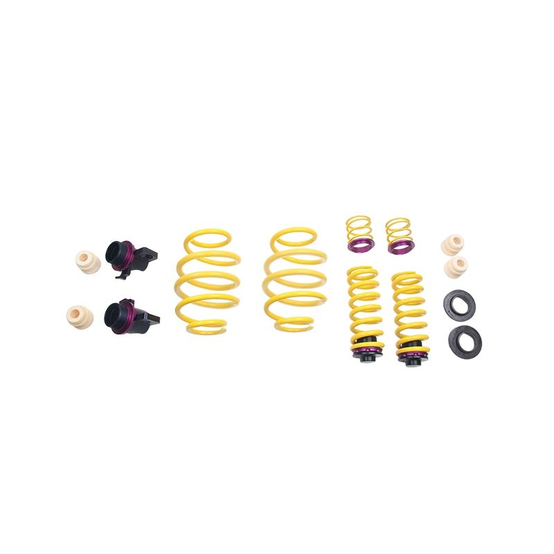 KW height adjustable spring kits are a great alternative to conventional lowering springs. You now longer have to be satisfied with a fixed lowering height. KW HAS systems allow you to adjust the vehicle ride height with the KW height adjuster even after the kit has been installed. Your vehicle does not only get a more dynamic look with the KW height adjustable spring kit, but also the steering behavior and response of the standard dampers becomes more agile. All driver assistance systems and comfort features of a factory adaptive or electronic suspension remain operational and work harmoniously with our vehicle specific spring set up.