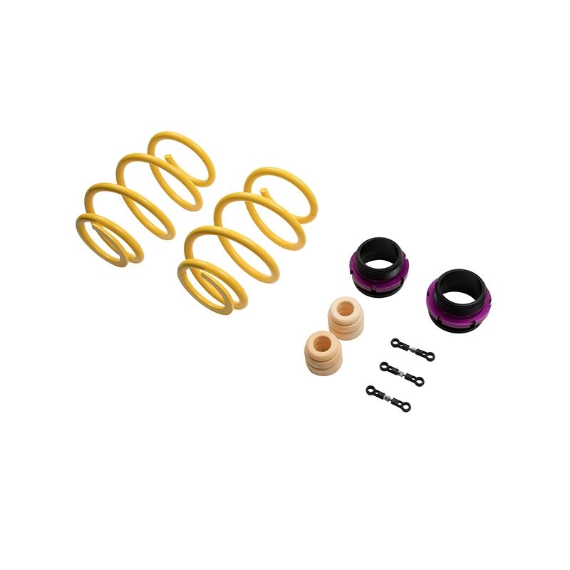KW height adjustable spring kits are a great alternative to conventional lowering springs. You now longer have to be satisfied with a fixed lowering height. KW HAS systems allow you to adjust the vehicle ride height with the KW height adjuster even after the kit has been installed. Your vehicle does not only get a more dynamic look with the KW height adjustable spring kit, but also the steering behavior and response of the standard dampers becomes more agile. All driver assistance systems and comfort features of a factory adaptive or electronic suspension remain operational and work harmoniously with our vehicle specific spring set up.