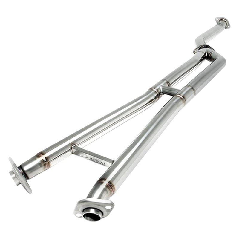 N1 X Evolution 304 SS Non-Resonated Mid-Pipe (144-KT03P) by APEXi®. Main Piping Diameter: 60.5mm x 2. The N1 Evolution Extreme is based on the proven performance basics of the N1 muffler. Optimum exhaust efficiency is achieved through the mid-pipes running parallel between the catalytic converter and rear muffler section. The H-style piping design was opted to equalize the pressure in both exhaust pipes. Apexi unique modular design allow the mid-pipes to be interchangeable with the factory OEM exhaust system components along with the rear section which is sold separately.
