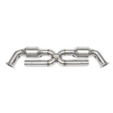 The 997.2 Carrera Center Muffler Bypass X-Pipe makes a great compliment to either the factory side mufflers or to Fabspeed's Maxflo Performance Side Exhaust System. It improves exhaust tone and saves weight by replacing the factory center muffler with a lightweight x-pipe.