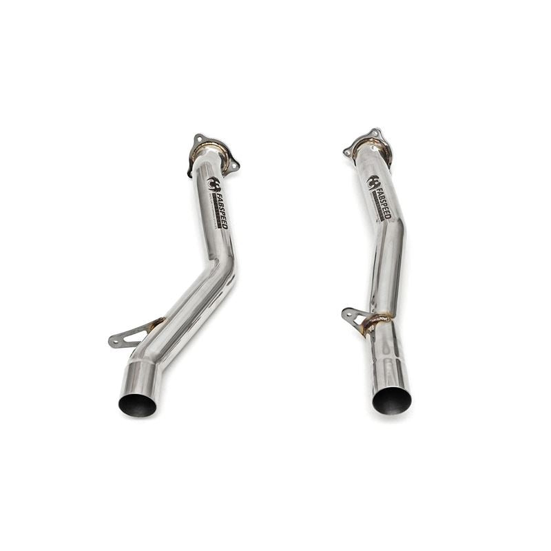 Fabspeed's Secondary Catbypass Pipes replace the restrictive factory catalytic converters with much less restrictive straight-through pipes for maximum flow and performance.