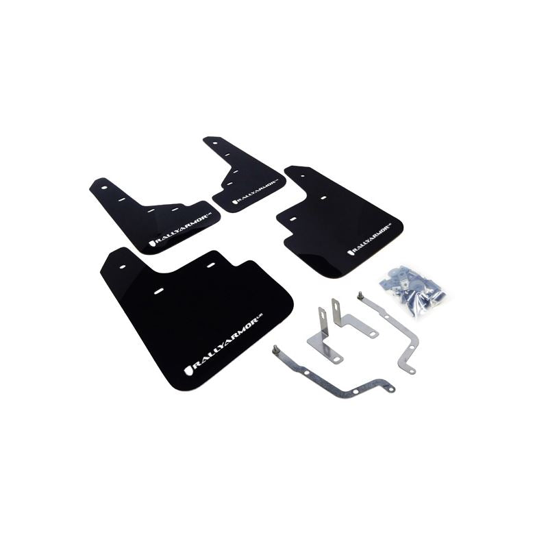 Rally Armor Black Mud Flap/White Logo for 2017-2018 Mazda 3 (MF31-UR-BLK/WH)