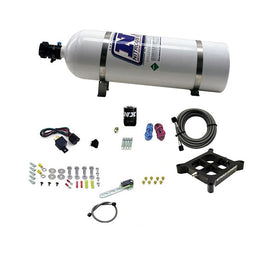 Nitrous Express Dry, Quad Stage Billet Crossbar Plate System 100-2000HP (4150 Flange) W/15Lb Bottle (66442-15)