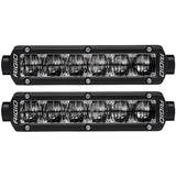 Off-road auxiliary lighting is one thing, but everyone knows that it is important to have lighting that is also safe and legal for on-road use. RIGID SAE Compliant street legal Fog Lights and Auxiliary High Beam Driving Lights allow them to be used on-the-road and not just off-road. RIGID created the proprietary output spread and height with the new patented optic system. The color temperature of these LEDs was carefully chosen to be a perfect range of pure daylight to penetrate the night for superior clarity on the road. These SAE Compliant lights project long-range high intensity light while drawing very little power and provide up to 50,000 useful hours. Available in many housing sizes, including SR-M, SR-Series single row, E-Series double row and D-Series pods. As an added function, the 20 and 30 Inch SR-Series SAE LED light bars offer a bold back-lit RIGID branding plate. This feature can be run independently, or in tandem with the forward projecting LEDs. The low-profile optic design, advanced engineered heat sink, durability and the highest quality of strength of a polycarbonate lens is the ultimate solution for your street-legal lighting needs in North America. Own The Night with RIGIDs street legal LED lights.Professional Installation Recommended, Street Legal SAE.