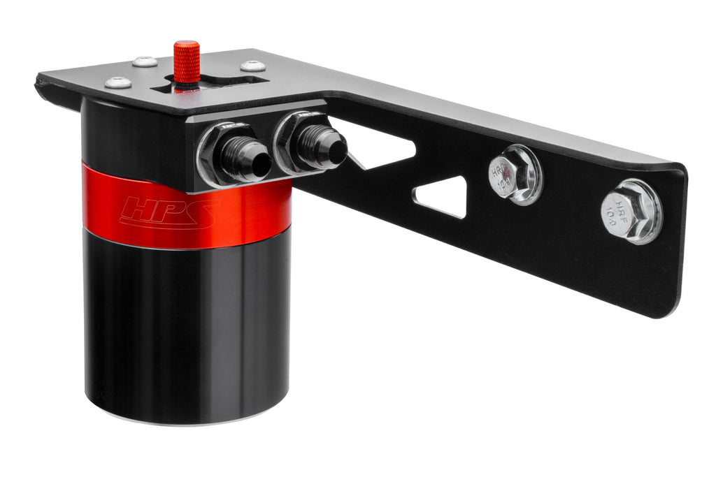 The HPS Performance Oil Catch Can is an essential component to add for anyone who is looking to keep their engine healthy. Designed to meet the rigorous demands of off-road adventures, this essential accessory actively captures detrimental crankcase blow-by, preventing power-robbing carbon deposits from forming within your engine. By maintaining a cleaner combustion chamber, the HPS catch can ensures optimal engine performance and significantly prolongs the lifespan of critical components. Built to endure, its rugged billet aluminum construction and large 5oz capacity are perfectly suited for challenging environments. Maintenance is simplified thanks to the integrated dipstick and easily detachable can, allowing for hassle-free upkeep wherever your journey takes you. Installation is quick and simple, utilizing a custom bracket for secure, no-modification mounting, and the kit comes complete with premium -6 AN hoses and fittings. Protect your engine from harmful contaminants, unlock enhanced performance, and improve overall efficiency, ensuring countless miles of worry-free exploration with this kit.