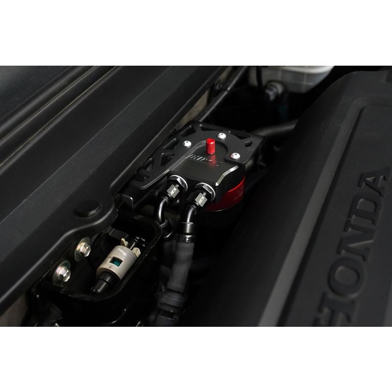 If maximizing the performance of your 2018-2022 Honda Accord 2.0L Turbo is what you're after, the HPS Performance Oil Catch Can Kit is the way to go. This oil catch can kit filters out oil and water vapors that normally enters through the PCV system, effectively raising the octane content in the combustion chamber. This kit also reduces carbon build-up on the intake valves which is an inherent problem for direct injected engines. Machined from billet aluminum, the HPS oil catch cans features built-in diverters and baffles to trap and separate harmful contaminants. The screw-on cup is a solid one piece design with a completely sealed base which eliminates any leaks that are common on many catch cans on the market. The bottom of the cup features a 14mm hex to fit a wrench or socket when it comes time for service. The screw-on dipstick lets you easily monitor the fill level without disassembling the catch can. With a 5oz capacity, this catch can provides plenty of buffer between maintenance intervals. The HPS Performance Oil Catch Can Kit for the 2018-2022 Honda Accord 2.0L Turbo includes a custom designed and powder coated steel bracket that mounts to the firewall using existing factory mounting points and allows ample room for serviceability. Our oil catch can kit includes pre-assembled hoses and -6 AN fittings for a premium experience and hassle-free bolt-on installation.