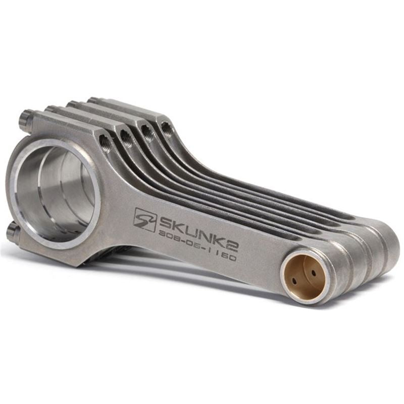 489 GRAMS-4340 Chromoly; H-Beam Design w/3/8in. ARP2000 Bolts-152.00mm Length-Rated to 900hp. Alpha Series Rods are forged from select 4340 chromoly steel and feature a straight H-beam design, resulting in the ultimate strength-to-weight ratio. 4340 chromoly is one of the strongest materials available, however, not all 4340 chromoly is the same. As such, Skunk2 relies on extensive material testing and works closely with its foundry to produce high-quality rods at an affordable price. Comprehensive heat-treating, tempering, and shot-peening processes together ensure that each Alpha Series Rod remains consistent and strong. Finally, each rod is magna-fluxed to ensure integrity and that each process has been completed thoroughly and according to Skunk2's rigid specifications.