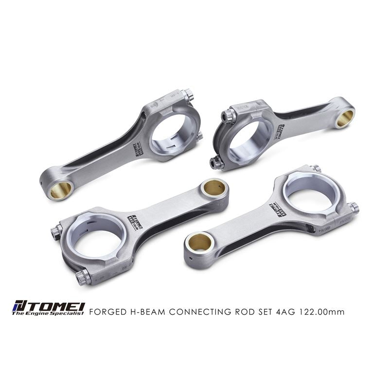 Tomei Connecting Rods are forged from molds with the main bearing hole predetermined, not machined from a solid piece. This produces a connecting rod with supreme durability which can withstand extreme conditions. Lack of the large end's strength leads the metal to distort and the bearing to wear out. To secure enough strength, Tomei applies "round shoulder shape" at the link of the rod's large end. To provide lubrication to the bushing in small end, instead of sending oil through the long hole inside the rod from the large end, Tomei assembled a tapered oil hole at the top of the small end so that the oil will drip during the piston's compressing cycle. This way the strength of the rod won't be sacrificed.