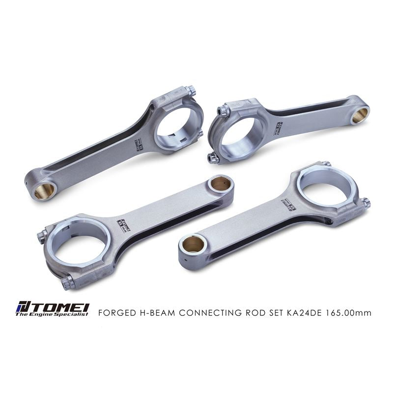 Tomei Connecting Rods are forged from molds with the main bearing hole predetermined, not machined from a solid piece. This produces a connecting rod with supreme durability which can withstand extreme conditions. Lack of the large end's strength leads the metal to distort and the bearing to wear out. To secure enough strength, Tomei applies "round shoulder shape" at the link of the rod's large end. To provide lubrication to the bushing in small end, instead of sending oil through the long hole inside the rod from the large end, Tomei assembled a tapered oil hole at the top of the small end so that the oil will drip during the piston's compressing cycle. This way the strength of the rod won't be sacrificed.