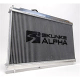 All Aluminum High Performance Dual Core Radiator-Does Not Include Radiator Cap. Skunk2's all-aluminum, full-size Alpha Series Radiator for the '06-'11 Civic Si is a direct-fit upgrade designed to dramatically increase both cooling efficiency and engine performance. Alpha Series Radiators are manufactured from lightweight and durable aluminum, feature 100-percent brazed cores, and include polished end tanks with Skunk2's signature Alpha logo embossed along each side. Each Alpha Series Radiator features a dual-core design, high-efficiency fins for maximum cooling capabilities. Each Alpha Series Radiator also includes provisions for the OEM cooling fan and OEM-compatible, 1.25-inch inlets and outlets. Skunk2's commitment to producing high-quality components means that each Alpha Series Radiator meets or exceeds original equipment manufacturer standards, that each radiator may be installed without modification to the vehicle, and is compatible with OEM hoses, cooling fans, and shrouds. (Note: Some engine swap applications may require custom radiator hoses and/or cooling fans.) Skunk2's Alpha Series Radiators are the perfect addition to any high-performance vehicle and are designed for the street, the track, or even OEM replacement purposes. Alpha Series Radiators are built to withstand harsh elements as well as against years of under-hood heat cycling. Each Alpha Series Radiator adheres to strict quality control standards and careful packaging, resulting in tubes and fins capable of optimal flow and efficient heat transfer.