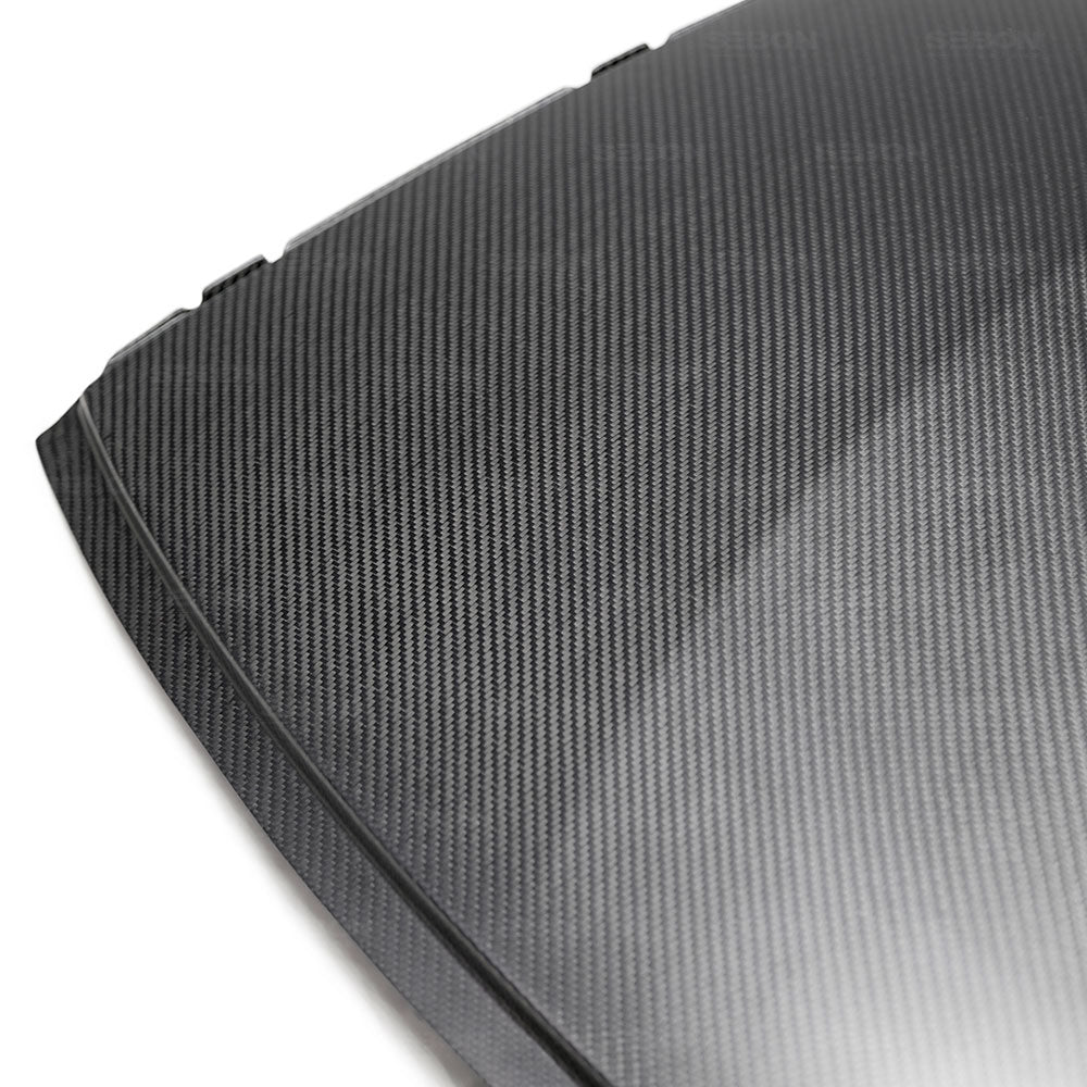 Seibon Carbon components are carefully hand-crafted using only the finest materials. Our production team offers superior craftsmanship with over 15 years of experience working with carbon fiber. Every component is constructed with a consistent weave pattern. Our dry carbon production process allows exceptional carbon/resin ratio, creating extraordinary weight savings, product stiffness, and strength, making dry carbon products most adequate for serious race usage. Contrary to wet-lay carbon products, our dry carbon components have a matte finish that is both smooth and genuinely attractive. We meticulously inspect all of our components and stand firmly behind our products so that you can enjoy peace of mind with every genuine Seibon Carbon product. Creating performance-oriented products that help shed unnecessary weight without sacrificing style is our specialty. Race after race, Seibon products have proven to be as strong as the driver's ambition to win, thus making Seibon Carbon the preferred brand among professional drivers. All dry carbon products are matte finish.