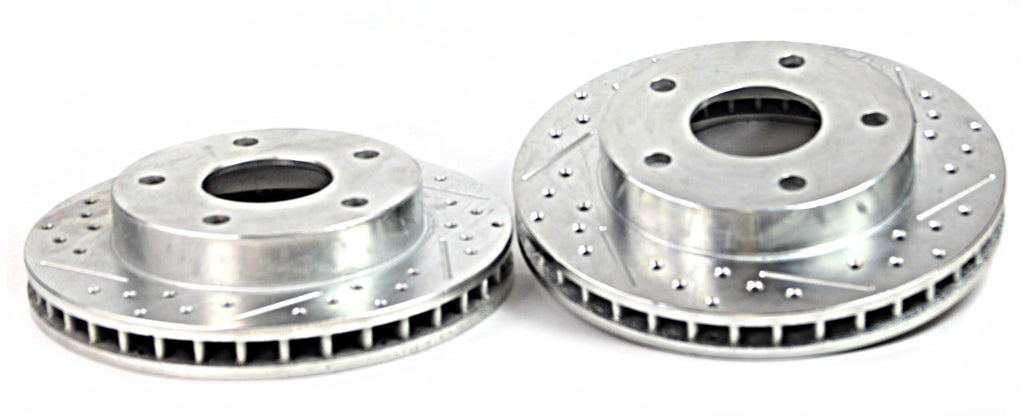Baer Claw performance rotors are a great way to improve your vehicles braking performance and overall appearance. The kit includes a pair of direct replacement rotors with a cross-drilled and slotted friction surface that allows an escape route for the gasses and dust that form between the pad and rotor during braking providing a more consistent pedal feel and reduced brake fade. Each pair of rotors are zinc-plated providing a brilliant finish behind open center wheels.