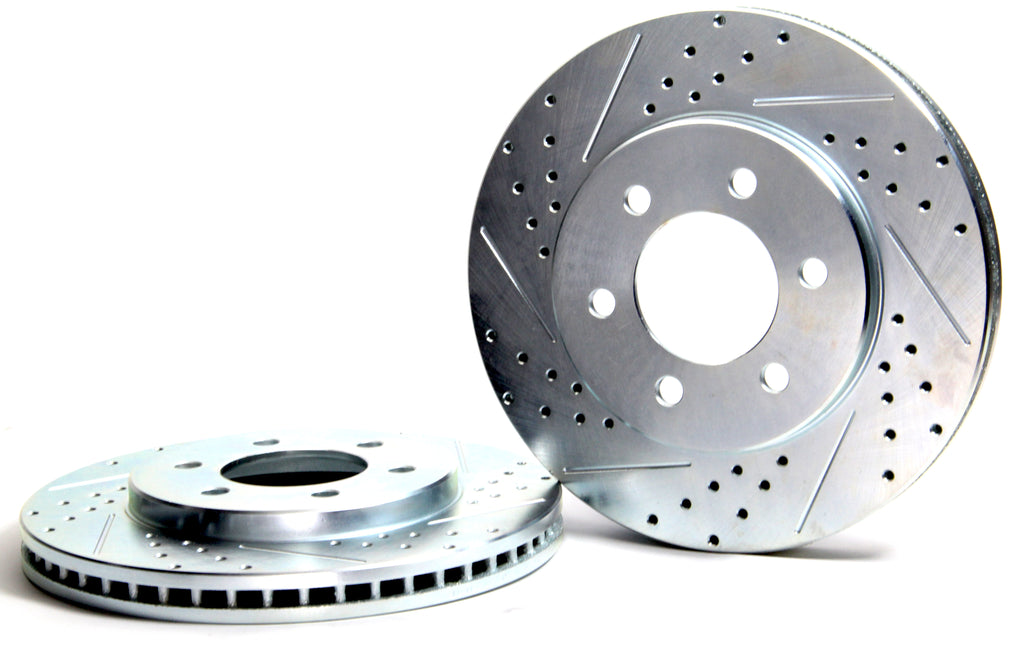 Baer Claw performance rotors are a great way to improve your vehicles braking performance and overall appearance. The kit includes a pair of direct replacement rotors with a cross-drilled and slotted friction surface that allows an escape route for the gasses and dust that form between the pad and rotor during braking providing a more consistent pedal feel and reduced brake fade. Each pair of rotors are zinc-plated providing a brilliant finish behind open center wheels.