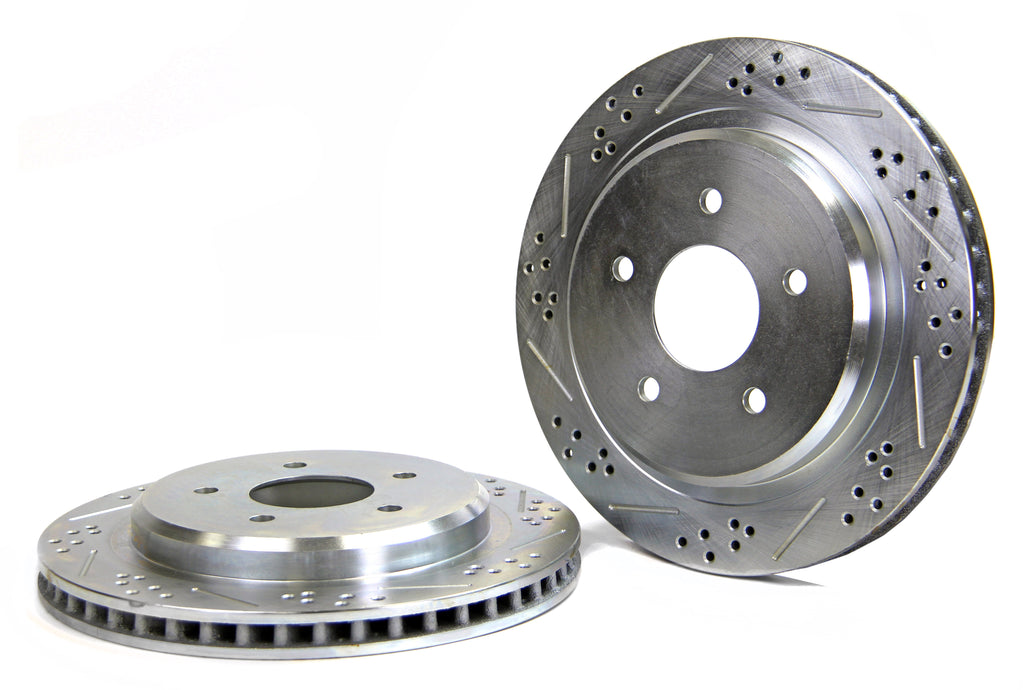 Baer Claw performance rotors are a great way to improve your vehicles braking performance and overall appearance. The kit includes a pair of direct replacement rotors with a cross-drilled and slotted friction surface that allows an escape route for the gasses and dust that form between the pad and rotor during braking providing a more consistent pedal feel and reduced brake fade. Each pair of rotors are zinc-plated providing a brilliant finish behind open center wheels.