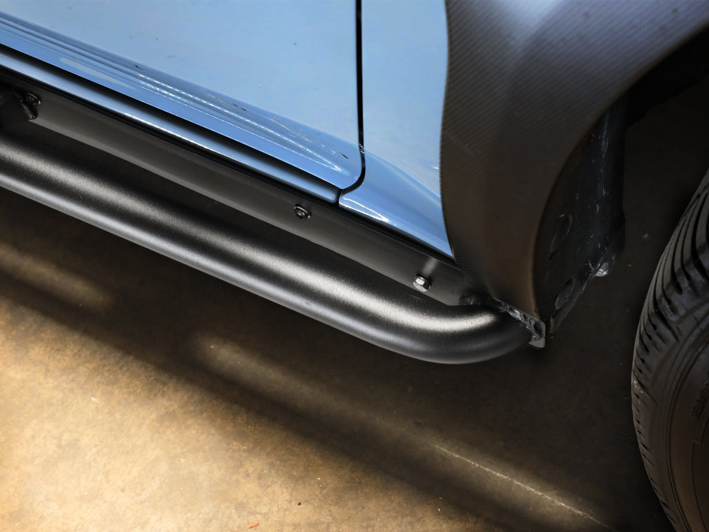 Introducing the Subaru Crosstrek Terra Guard Slider, the ultimate body protection for your Subaru. Crafted from heavy-gauge steel, this rugged upgrade replaces the factory lower plastic cladding, ensuring ultimate protection when navigating rocky terrains. With its innovative design, the bottom wraps around the pinch seam for added strength, while maintaining no loss of ground clearance. The entire pinch seam rail can even be used as a jacking point, providing versatility on your off-road adventures. The slider also offers a safe and secure platform to access your rooftop storage and gear. Upgrade your Subaru Crosstrek and conquer any terrain with confidence. Slider is crafted from 1/8 inch steel plate that forms to the rocker panel, wrapping around the pinch rail with 1/8 inch wall tubing outer profile for ultimate protection when sliding on or pivoting around obstacles. Our Terra Guard Trail Slider matches the factory rocker panel profile increasing over all ground clearance. Entire pinch seam rail can be used as a jacking point. Our large step pad area provides a secure platform to gain access to roof top storage and gear. Replaces factory lower plastic cladding, utilizing original mounting points with no drilling or cutting required. Slotted drain holes in pinch seam rail allow for water drainage. Finished in a textured black powder coating not only ensures long-lasting durability but also adds a rugged look to your vehicle's appearance. PATENT PENDING