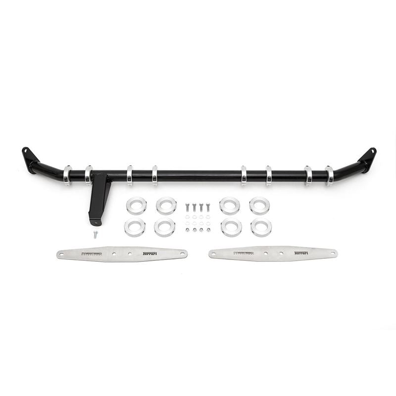 - Kit includes a full-width bar, shoulder harness collars, T304L stainless steel sub-belt mounting brackets, and all required hardware for both seats.
