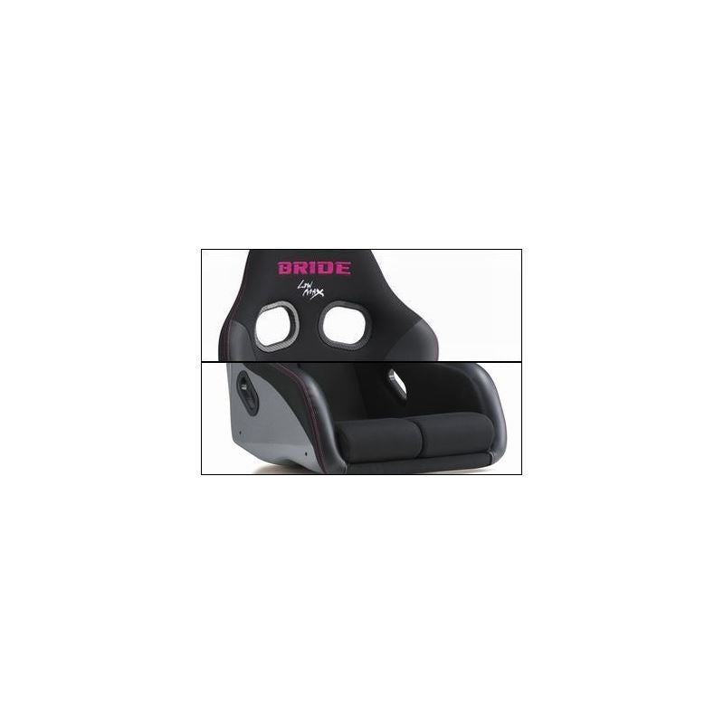 The shell material is an FRP silver shell, and the seat color is black. The BRIDE logo on the headrest and the stitching are in a special pink color.