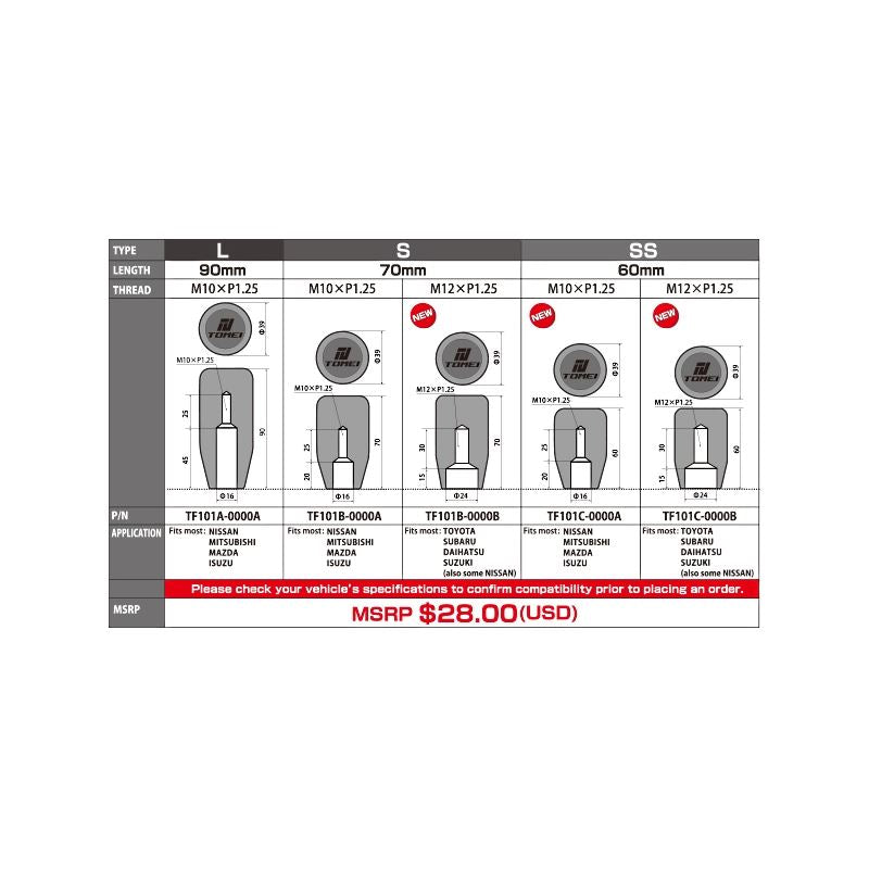 Driving style, seating position as well as seat type can all affect which shift knob is right for you. For example the shortest, Type-SS, may be a great option for those swapping to a bucket seat or lowering seating position. The ergonomic cylindrical design makes the shift knob easy/comfortable to grip especially during extreme driving conditions. It's also much easier to push into gear when compared to spherical type shift knobs. These shift knobs are also sized to fit comfortbale, even when using a racing glove.