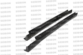 Our side skirts, especially when installed in conjunction with a bumper lip, can give your street car the lowered, road hugging, ready-for-the-track appearance you're looking for. They're manufactured from durable materials including carbon fiber, ABS plastic, fiberglass, and urethane, and designed specifically for each application, so you can be assured of form that will perfectly complement your car's styling, and easy fitment. They'll arrive at your door ready for prep and paint, and depending on the brand, install easily with bolt-on or adhesive attachment.