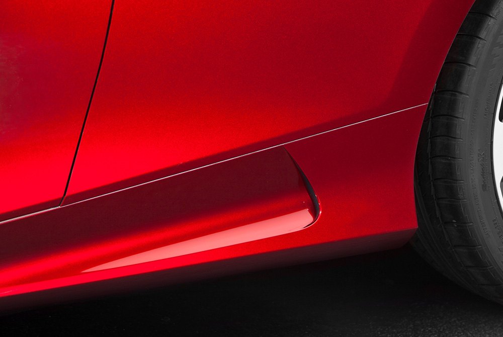 This is where side skirts become beneficial. Side skirts minimize the amount of air that goes under the car from the sides. In fact, without side skirts, a bumper lip's effect can be negated because the low pressure area created under the car by the bumper lip would cause high pressure air from the sides to come rushing in. Accordingly, side skirts are more effective when they are closer to the ground. But aside from performance, side skirts also create the visual effect of making a car appear lowered, as if it were “hugging” the pavement.