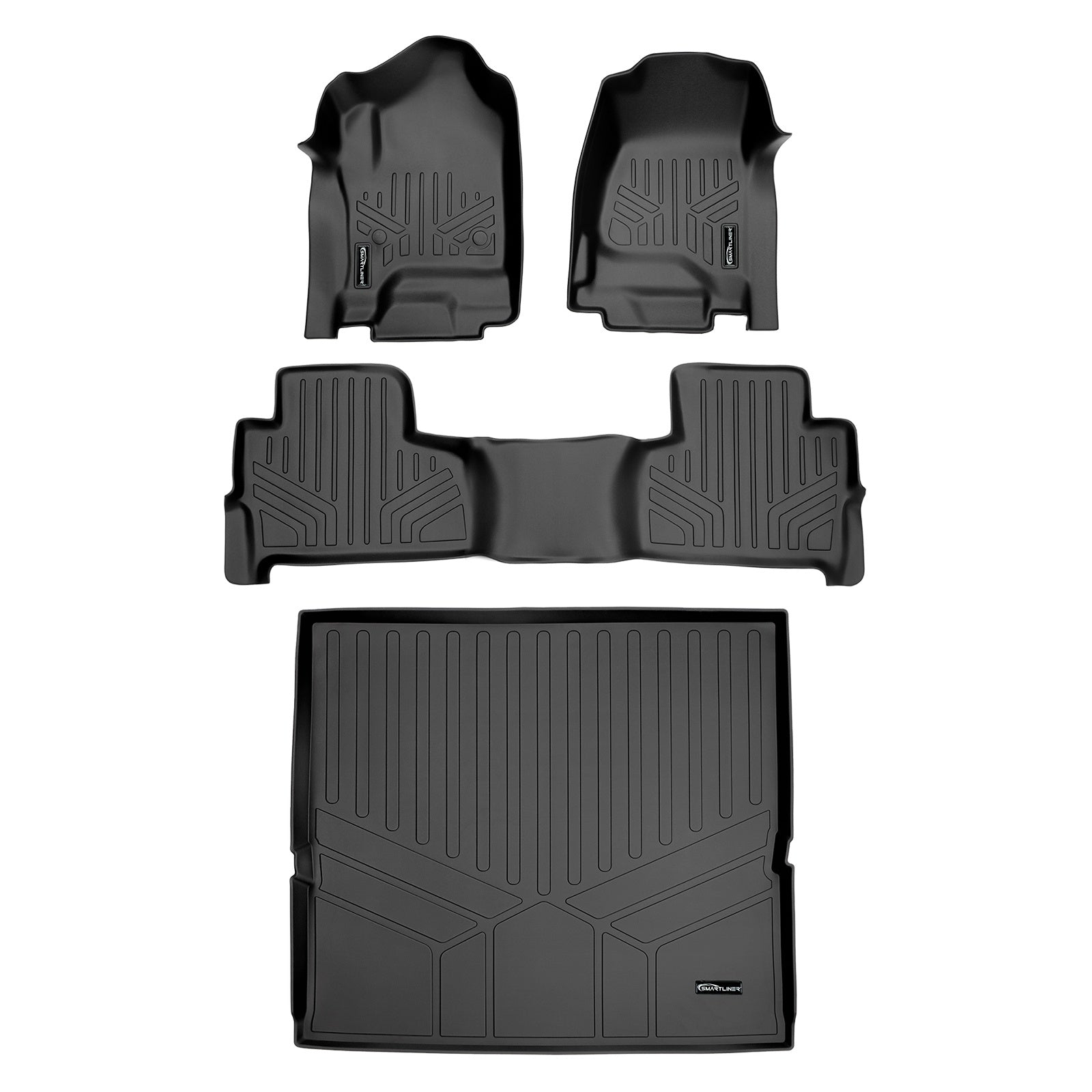 SMARTLINER Custom Fit Floor Mats 2 Rows and Cargo Liner Behind 2nd Row Set Black Compatible With 2015-2020 Chevy Tahoe / GMC Yukon (SA0136/B0153/D0153)