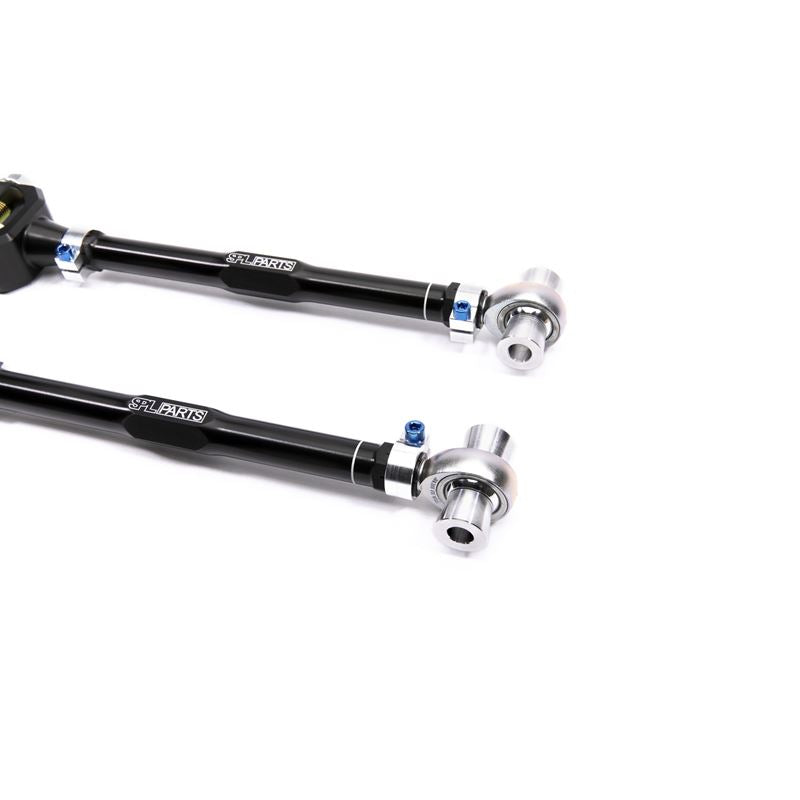 ND Miata Rear Lower Camber Arms (RLL) greatly increase the range of rear camber adjustment for high performance track/street applications and are a must for lowered cars to meet alignment requirements.The adjustment range provided by the eccentric washer on the OEM control arm is insufficient to get camber back into proper spec.Our Rear Lower Camber Arms feature gun drilled 2024 Aluminum center links, clamps, and clevises, along with Blue Anodized Titanium socket head cap screws and our 360 degree rotating clamp system.This combination provides superior strength, performance, durability, and ease of adjustment.Long gone are the days of fumbling with wrenches to tighten jam nuts while trying to trying to keep your bearings oriented correctly.A simple 3/16" allen key is all that is required to lock down your alignment settings! FK Spherical Rod Ends eliminate the soft worn out bushings on the stock links to reduce alignment change in the rear suspension under hard cornering, acceleration and braking.They feature a Teflon liner to provide quiet operation, low friction, smooth articulation, and eliminates bushing deflection under load.The PTFE liner is chemically bonded to the inner diameter of the race.The liner offers a very high load carrying capacity and has greatly increased dynamic wear characteristics.The operating temperatures of the liner ranges from -65 to 325F, offering robust reliability for both street and track use.