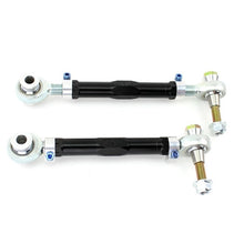 SPL Parts adjustable rear toe arms for the Lexus IS300 increase stability and response by eliminating bushing deflection and offer a wide range of toe adjustment. These arms are designed for use in high performance street and race vehicles. A lowered IS300 will need adjustment to get toe back in spec to ensure proper tire wear and handling. Even small changes to ride height and camber will effect toe settings. Black anodized 2024 Aluminum main links along with our 360 degree rotating clamp design allow for quick and precise adjustment. Sold as a pair.