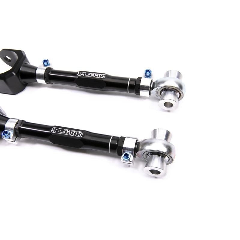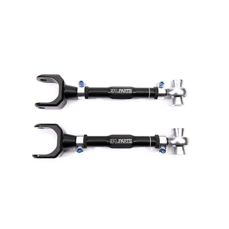 Tesla Model 3 Rear Upper Traction Links increase response and stability by eliminating bushing deflection under hard acceleration and braking and help to reduce wheel hop on hard launches.Our length adjustable links allow fine tuning of rear bumpsteer and anti squat characteristics.These arms are designed for use in high performance street and race vehicles. Our Rear Traction Links feature gun drilled 2024 Aluminum center links, clamps, and clevises, along with Blue Anodized Titanium socket head cap screws and our 360 degree rotating clamp system.This combination provides superior strength, performance, durability, and ease of adjustment.Long gone are the days of fumbling with wrenches to tighten jam nuts while trying to trying to keep your bearings oriented correctly.A simple 3/16" allen key is all that is required to lock down your alignment settings! FK Bearings rod ends manufactured in Connecticut feature a Teflon liner to provide quiet operation, low friction, smooth articulation, and eliminates bushing deflection under load.The PTFE liner is chemically bonded to the inner diameter of the race.The liner offers a very high load carrying capacity and has greatly increased dynamic wear characteristics.The operating temperatures of the liner ranges from -65 to 325F, offering robust reliability for both street and track use.
