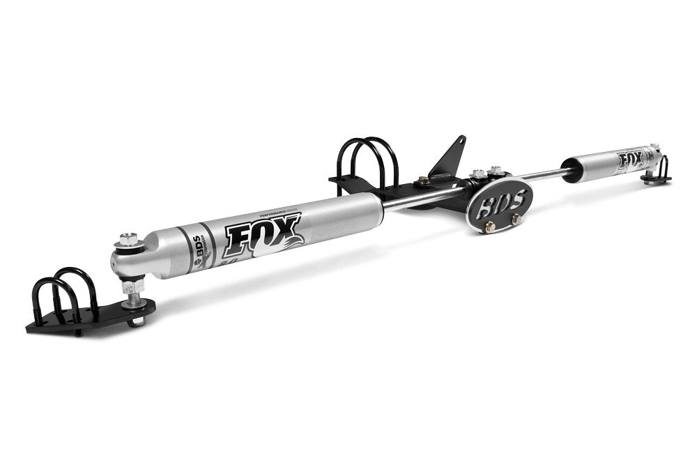 We offer both single and dual steering dampers, each one engineered for the specific application. For vehicles with only a moderate increase in tire size, a single stabilizer is fine, but dual stabilizers are generally required for very large tires and if heavy accessories like a snow plow or winch have been installed. Of course, you may want a dual system just for the rugged, off-road ready look. Along with their superior functionality, both our single and dual steering dampers are made tough with heavy-duty bodies and mounts, and attractive and durable finishes, and many feature boots to protect the rod and seal. On some applications the damper is relocated up and out of the way for additional protection. We also have relocation brackets to move your existing damper to a more protected location.