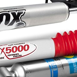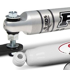 Our steering dampers are made by the top brands in the performance suspension industry, and generally based on the shock absorbers that these companies are so well known for. They're of heavy-duty construction, and while specific features will vary according to damper and application, most are gas charged to prevent fade, with cylinder valving specifically designed to maintain smooth steering over rough terrain with larger and heavier wheels and tires. With one of these stabilizers installed you'll enjoy optimal steering control with minimal effort and unrestricted movement, while vibration, wobble and shock are suppressed. We have complete kits to outfit your rig with a steering damper as well as replacement dampers that are an upgrade from the OE unit.