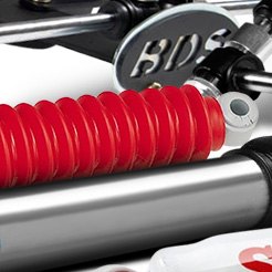 Wobble and bump steer can make driving tiring and unenjoyable at best, and extremely unsafe at worst. This phenomena is not unknown to OE manufacturers, which is why many trucks and heavy vehicles come with steering dampers from the factory. But just like shocks, these components can wear out and become ineffective, and if the vehicle is modified such as with a lift kit and large wheels and tires, the factory damper may be inadequate. If you're experiencing unwanted steering wheel gyrations due to the lack of a steering damper or a worn or feeble factory unit, we have the high-performance dampers that will restore steering smoothness and control. We also have an extensive selection of mounting brackets and replacement boots and bushings.