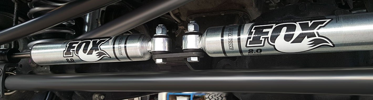 Our steering dampers are made by the top brands in the performance suspension industry, and generally based on the shock absorbers that these companies are so well known for. They're of heavy-duty construction, and while specific features will vary according to damper and application, most are gas charged to prevent fade, with cylinder valving specifically designed to maintain smooth steering over rough terrain with larger and heavier wheels and tires. With one of these stabilizers installed you'll enjoy optimal steering control with minimal effort and unrestricted movement, while vibration, wobble and shock are suppressed. We have complete kits to outfit your rig with a steering damper as well as replacement dampers that are an upgrade from the OE unit.