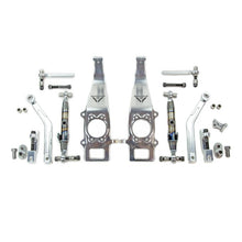 Voodoo13 Angle Kits are designed, tested, and proven by the world's best drifters. Chris Forsberg, Daigo Saito, and Robbie Nishida have won countless drift events and Formula Drift Championships utilizing Voodoo13 Angle Kits. CNC-machined from the highest quality raw billet materials, the precision and quality of the Voodoo13 Angle Kit is superior to most water jet / modified stock components. Steering and lower arm pickups in double shear for strength, and allows for bump steer adjustments. Dropped Spindles are designed to maintain proper geometry on lowered drift vehicles. Fully Adjustable Two-Piece Lower Control Arms allow for a wide range of adjustability on Track width, Camber, and caster. If you're looking to perform at the highest level or drifting, with proven performance, then go no further.