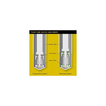 With a Twin-Tube shock absorber, the piston works inside of an inner Tube. The space between the inner tube and the casing is used as an equalization chamber. Changes in volume due position of the piston rod change the oil level in the equalization chamber between the outer casing and inner Tube.