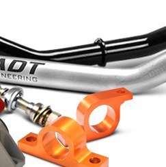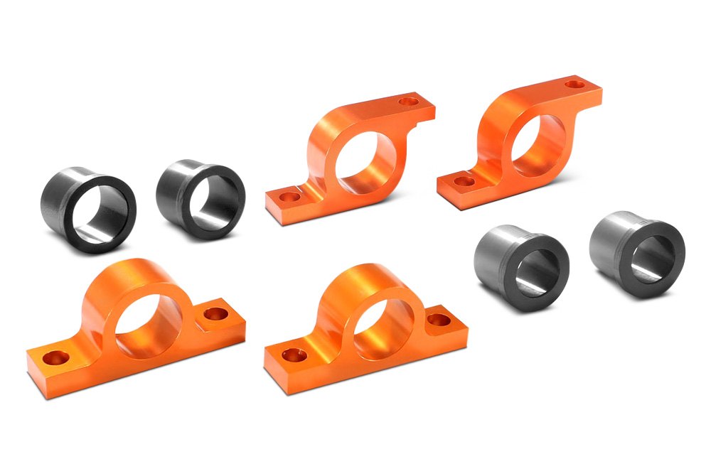 But if new sway bars aren't in the budget, there are still ways you can reduce body roll and improve handling with your existing setup. One of the easiest upgrades is switching to polyurethane bushings. They're much firmer and don't deflect like rubber, which will help your vehicle be more responsive and make handling more precise. Polyurethane bushings will also last much longer than rubber because they're impervious to environmental conditions like heat and contaminants like oil that usually cause rubber to deteriorate. We offer both polyurethane sway bar mount bushings and end link bushings. Some sway bar mount bushings are greasable, so you can have increased rigidity without unnecessary friction and wear, and we also have stronger CNC machined billet aluminum mounts.