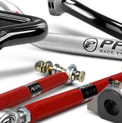 Our performance sway bars will measurably enhance handling by themselves, but they're the perfect complement to performance springs and shocks. These bars are precision bent on CNC machines to assure perfect fitment, and powder coated for a durable, long lasting finish. Most come with polyurethane bushings, and many bars are adjustable so you can fine tune your suspension. The method of adjustment varies according to brand and application - some bars and arms are splined so the connection points can be varied, some have several holes in the arms for end link attachment, and some end links can be adjusted for length. For the most rigidity and minimal friction, some adjustable end links feature durable, low friction spherical bearings.