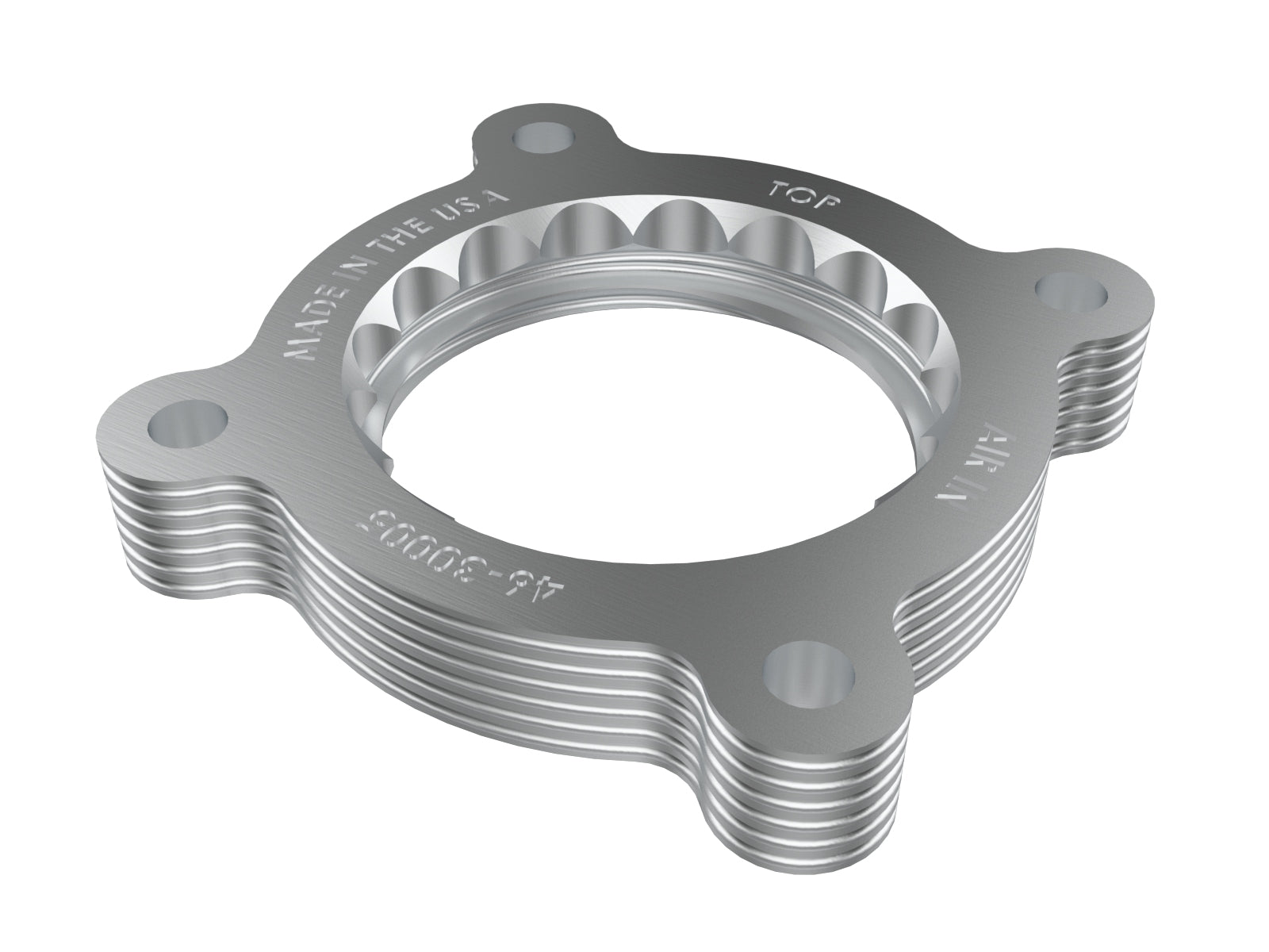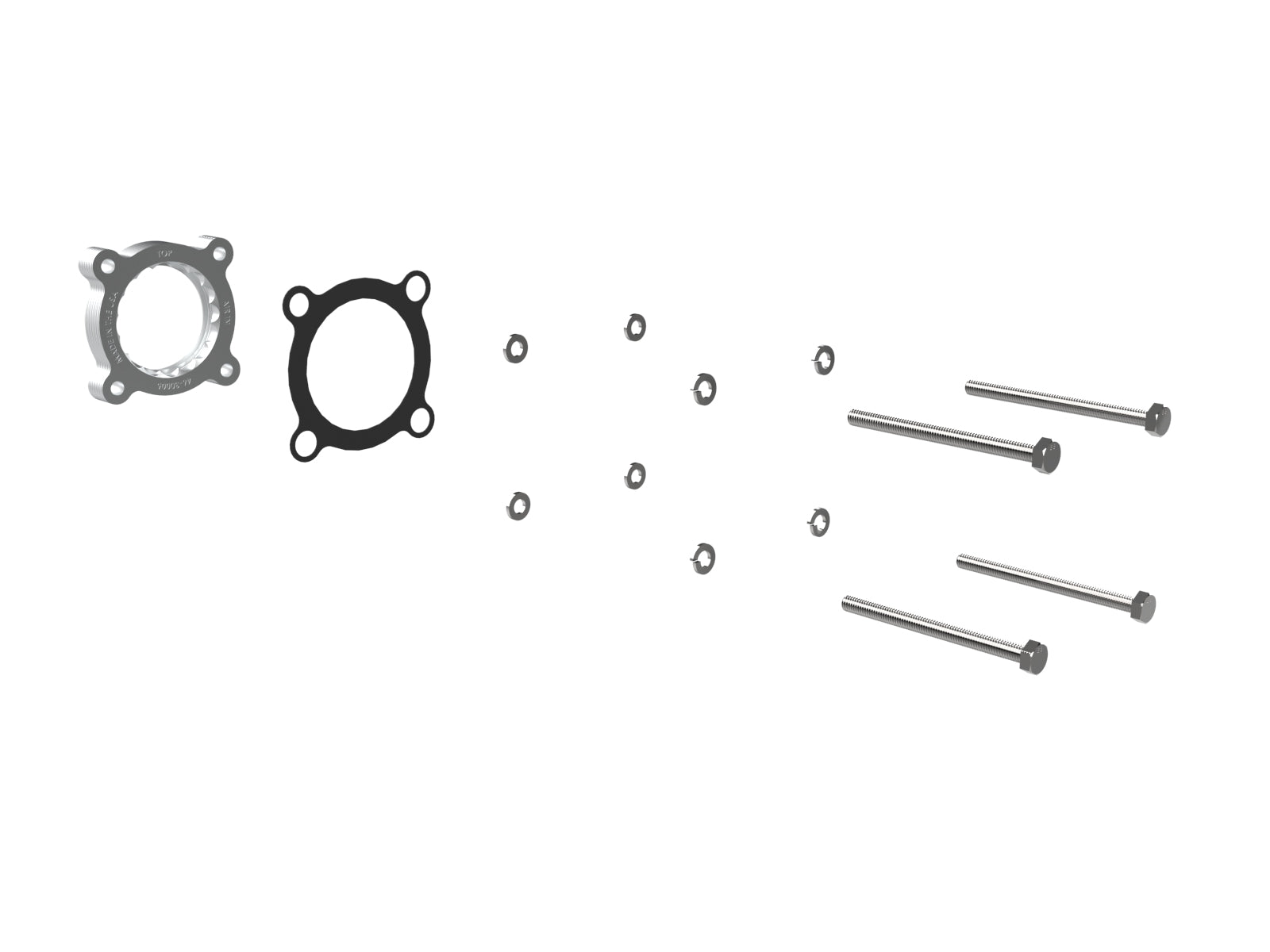 The Serrated/Helix combination design creates intake turbulence in the combustion chamber. This turbulence breaks up the fuel which creates a more complete combustion cycle increasing horsepower, torque and improving throttle response. The Serrated/Helix combination design also reduces intake whistle that occurs with Helix only designs. All Silver Bullet Throttle Body Spacers are constructed from 6061-T6 billet aluminum precision machined for light weight, high strength and perfect fit and finish. Complete with an orange anodized finish, the Silver Bullet Throttle Body Spacer will stand out as a per engine bay. This Silver Bullet throttle body spacer uses all factory mounting locations providing stability and a hassle-free installation.