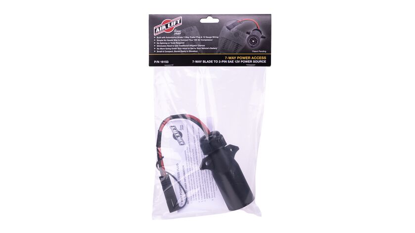 Upgrade or convert your current air compressor with Air Lift’s 7-Way Adaptor. The 7-way power adapter allows the compressor to be powered via the vehicle’s 7-way trailer plug. The SAE connector on the adapter cable allows you to replace the previous connector with the 7-way adapter for your current air compressor.