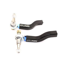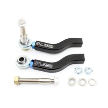 SPL Parts Titanium Series Front Outer Tie Rod Ends (TRE) allow for bumpsteer adjustment by enabling the tie rod end pivot to be relocated with the use of spacers. Reduced bumpsteer results in smoother steering and quicker lap times. On cars that are lowered significantly, relocating the pivot point will also keep the tie rod end from binding, thereby preventing the inner tie rods from breaking or bending when racing. High Misalignment Rod Ends from FK are utlized to further ensure full articulation and a crisp steering response. Machined to match the curvature of the OEM outer tie rod ends, our kit will ensure fitment with wide wheels and tires.