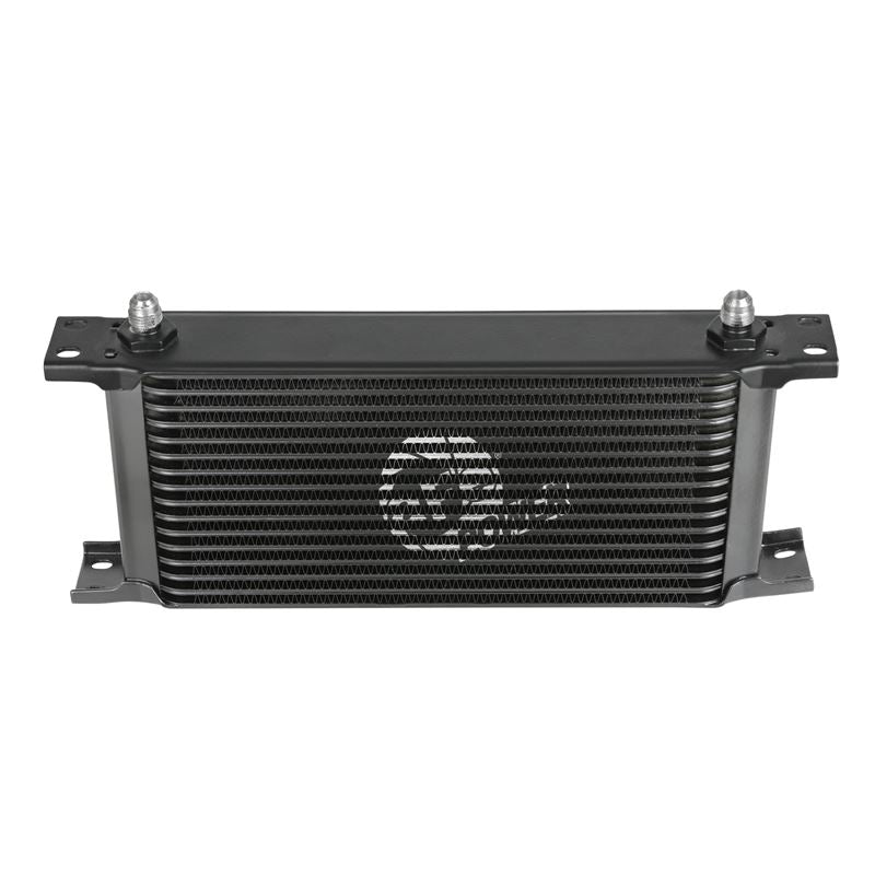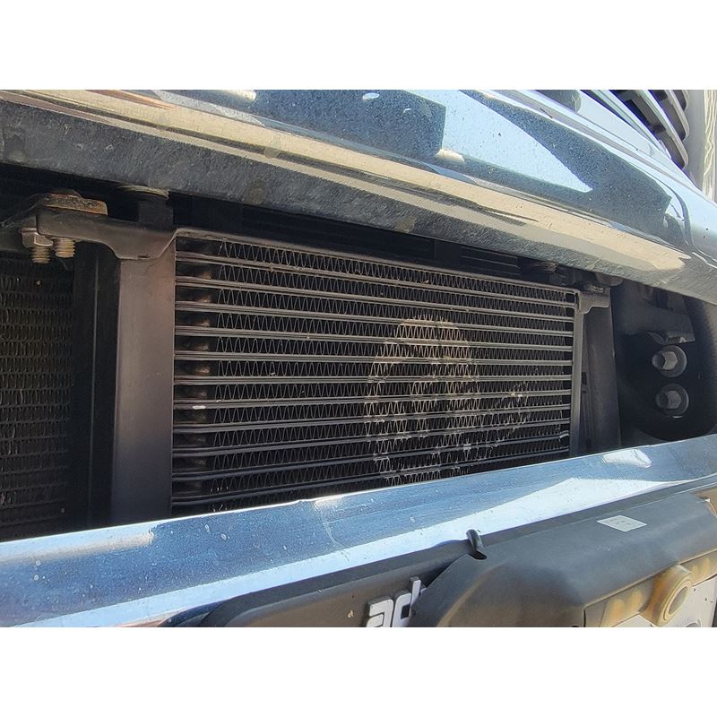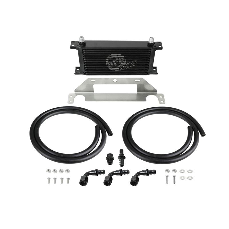 BladeRunner Transmission Oil Cooler Kit.This BladeRunner Oil Cooler uses a durable brazed all-aluminum stacked-plate construction that allows for greater efficiency and lower pressure drop than a standard tube-fin design. This transmission oil cooler is designed to work in-line with your vehicle's original equipment transmission cooler to provide lower transmission oil temperatures for rock-crawling and street hauling. The BladeRunner Oil Cooler kit makes installation simple with plug-and-play transmission line adaptors, direct-fit mounting brackets, stainless steel hardware, and leak-proof AN connections. No cutting or alteration of factory hardware is required. BladeRunner Oil Coolers feature a durable black finish with a laser-etched aFe POWER logo on the front and include black-anodized billet aluminum AN fittings for a sleek appearance.