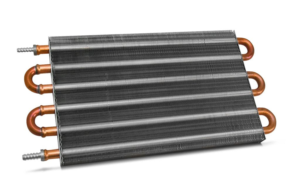 We offer several types of transmission coolers in sizes to suit every application. Tube and fin coolers have serpentine tubes through which the fluid flows, attached to fins that transfer heat to the air. They're generally inexpensive and we offer models with turbulators to increase the cooler's efficiency. Plate and fin coolers are formed like radiators, with fluid flowing through plates attached to cooling fins. Their larger surface area makes them more efficient. Stacked plate coolers are the most efficient, with larger plates than plate and fin coolers and turbulators for increased cooling.