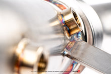 Our AMS SnailWorks© Engineering Team designed a downpipe that tapers from 3.5″ down to the factory exhaust joint which helps eliminate excessive back pressure. This tig welded 3.5″ stainless steel downpipe features a v-band connection, a 3.5″ flex section with smoothed internal liner, and a factory style 80mm slip joint. This allows for a perfect bolt-in solution to your existing exhaust system, and the flex joint allows for natural engine movement to help prevent broken welds or exhaust hangers.
