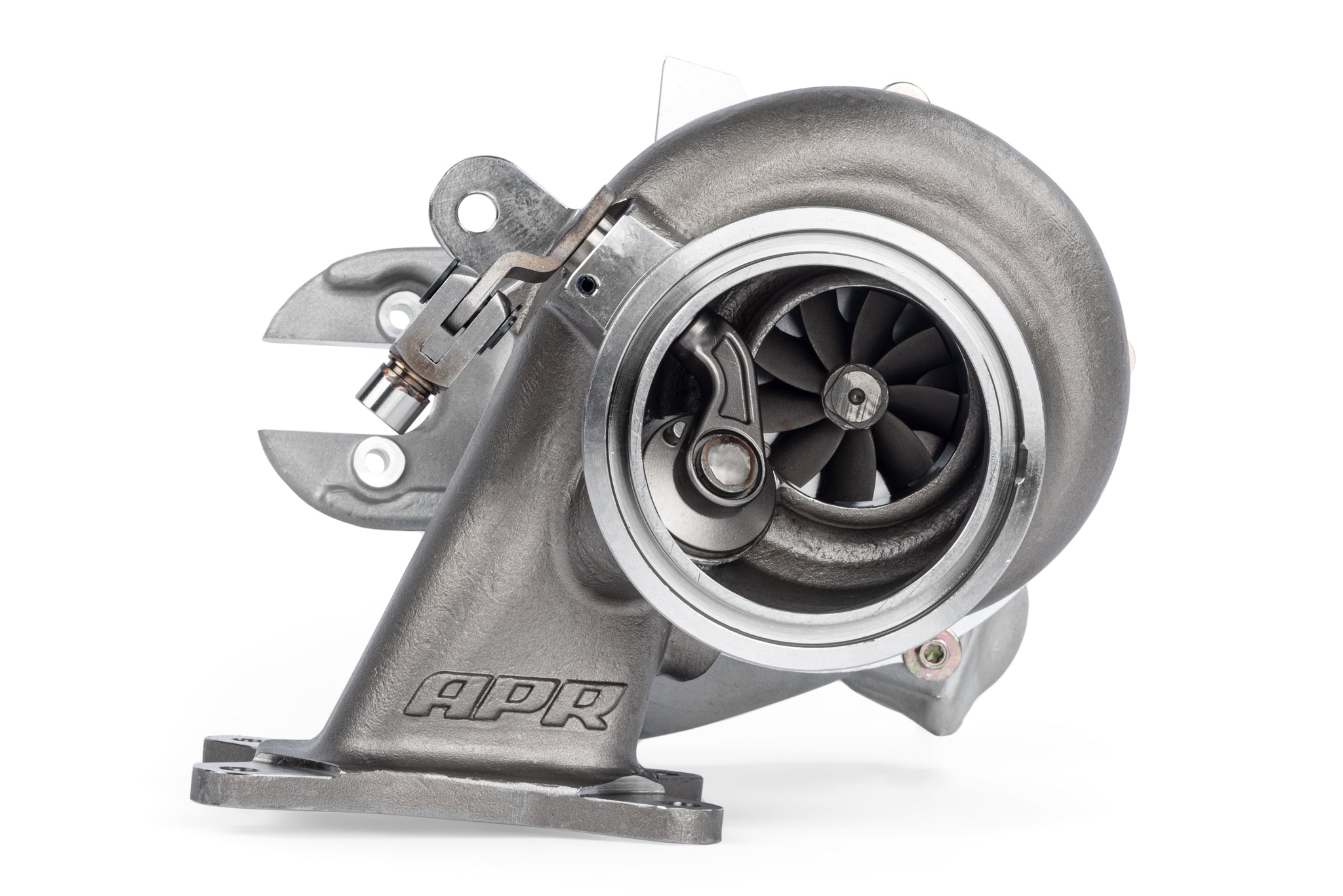 This is a brand new turbo designed and developed by APR from the ground up. It does not require a core, and there's no additional downtime associated with other upgrade styles. The turbo bolts to the factory location and connects to factory or upgraded components.